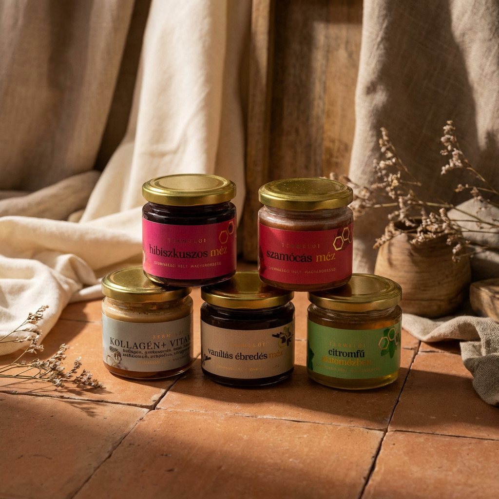 2. Hibiszkusz mézben: Az akácméz és a hibiszkusz virág egyedülálló harmóniája, amely nemcsak lenyűgöző ízvilágával, hanem természetes immunerősítő hatásával is kiemelkedik. Ez a vitaminokban gazdag mézkülönlegesség tökéletes választás mindennapjaidhoz, különösen az őszi és téli időszakban.