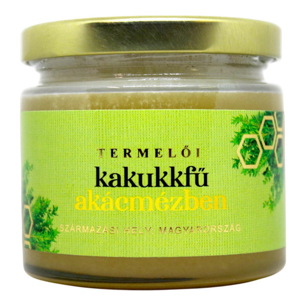 A Kakukkfű akácmézben a finom, selymes akácméz és a 100%-os tisztaságú kakukkfű esszenciális olaj különleges találkozása. Ez az egyedi párosítás nemcsak különleges ízélményt nyújt, hanem természetes módon támogatja a szervezet egészségét is. A kakukkfű karakteres, enyhén fűszeres aromája remekül kiegészíti az akácméz lágy édességét – tökéletes harmóniát teremtve minden kanálban.