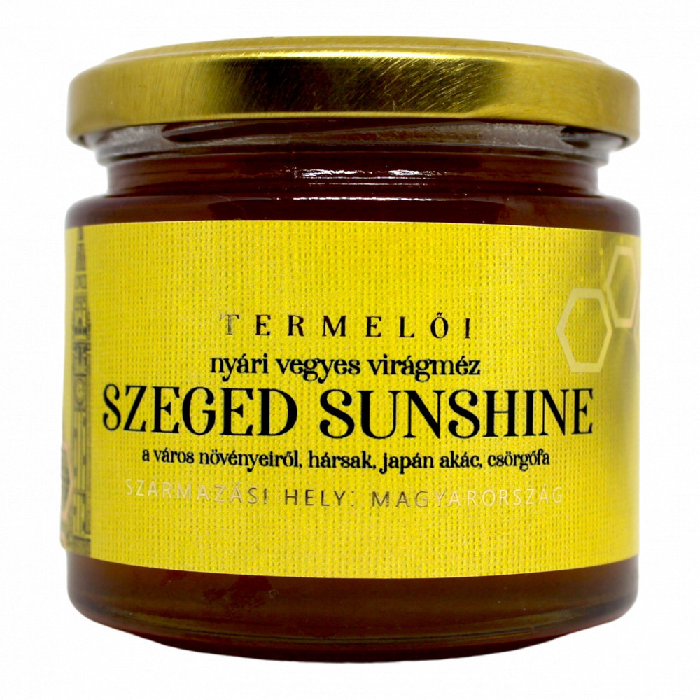 A Szeged Sunshine egyedülálló nyári vegyes virágméz, amely a szegedi hársak, japán akácok és csörgőfák nektárjából született. A természet ajándékainak tökéletes harmóniája egy üvegben, melyet a Békés Megyei Méhész Egyesület "Év Méze 2022" versenyén első helyezéssel díjaztak. Ez a méz igazi kincs, amely ízvilágával és minőségével minden mézkedvelő szívét elnyeri.
