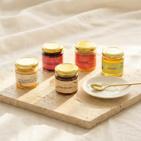5. Kollagén+ Vitamézes: Egy prémium minőségű, természetes mézalapú készítmény, amelyben avitaminokban gazdag méz, a kollagén és a különleges hatóanyagok egyesülnek az egészség és vitalitás szolgálatában. Ez a 230g-os különleges keverék egyszerre táplálja a szervezetet, erősíti az immunrendszert, és hozzájárul a bőr, a porcok és az ízületek egészségéhez.