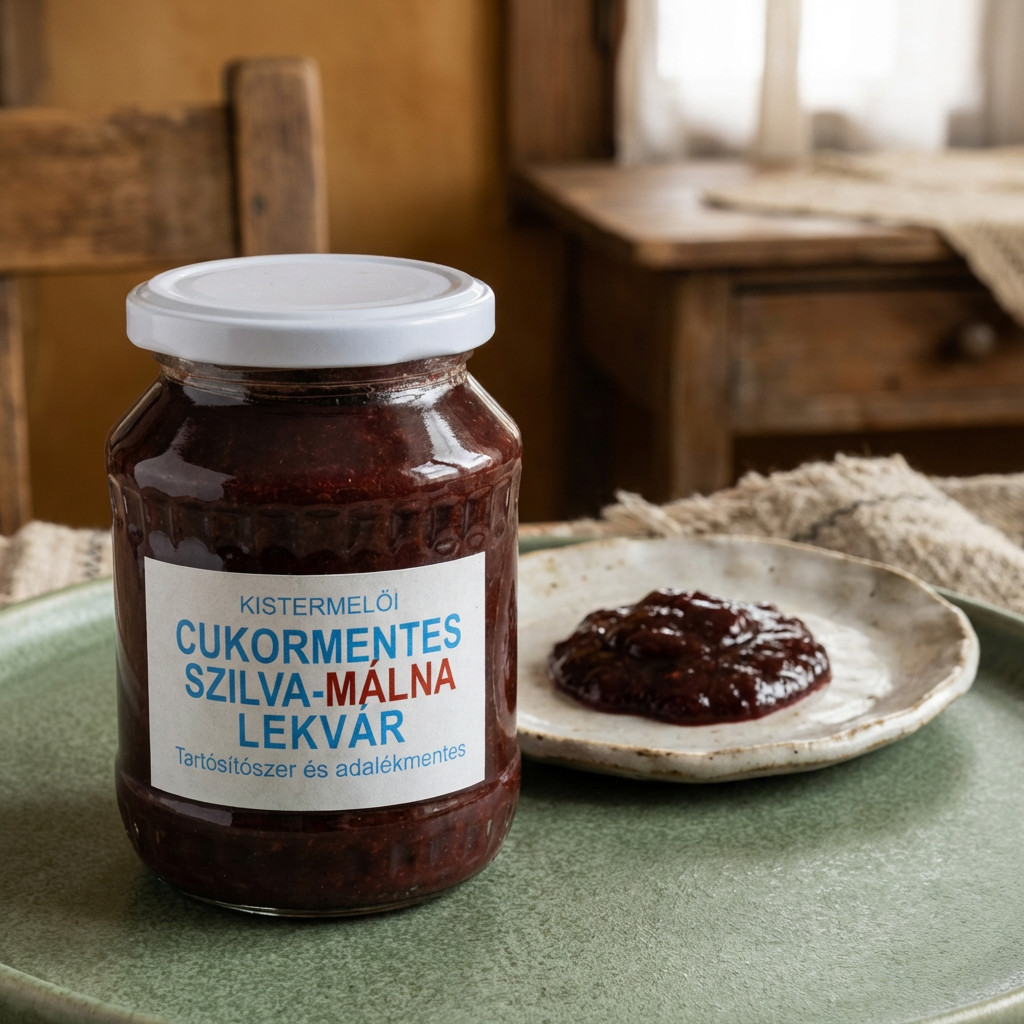 Smulkiųjų ūkininkų slyvų ir aviečių uogienė be cukraus.